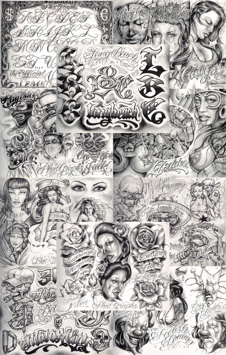 Amazon Com Boog Gangsta Style Tattoo Flash Set 5 Sheets With Linework Gangster 11x14 3 Beauty Personal Care
